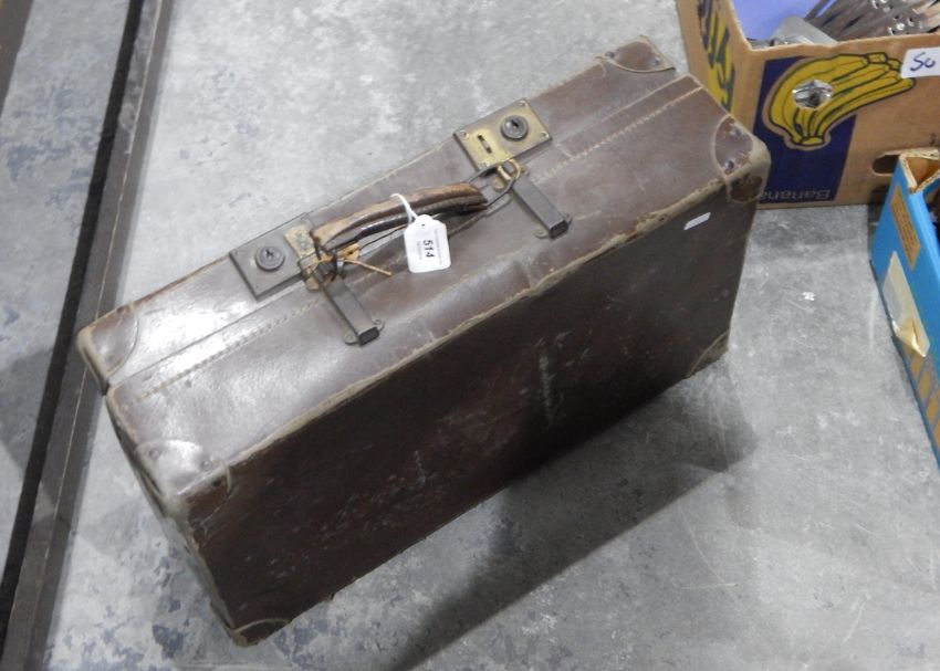 A vintage Revelation suitcase, another vintage leather case and various wooden items
