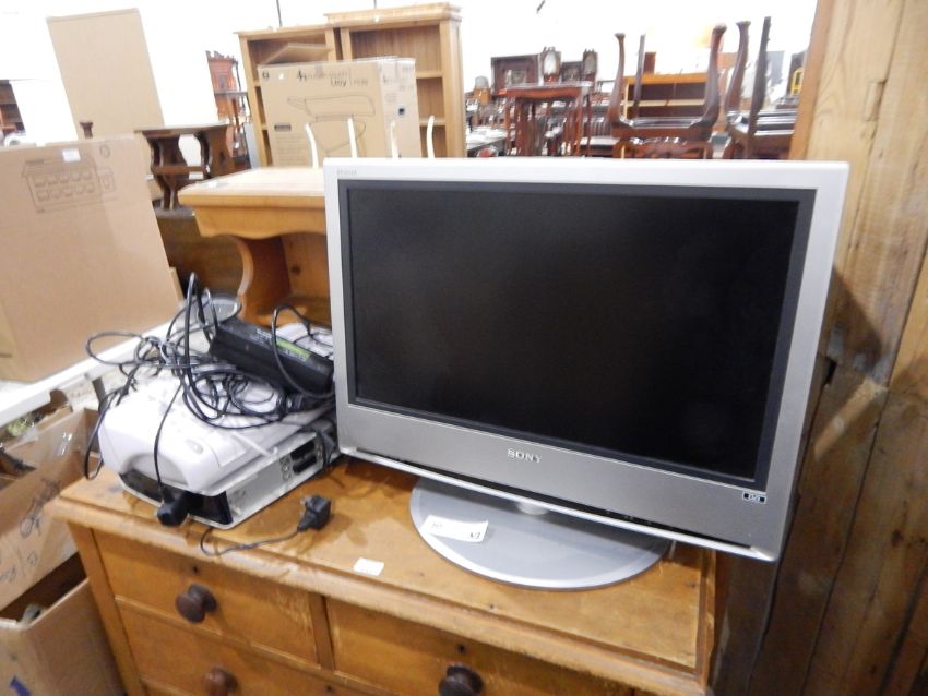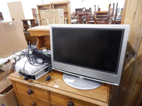 A Sony 26" flatscreen television (without remote), a Andrew James binder and a Sky HD box (3)