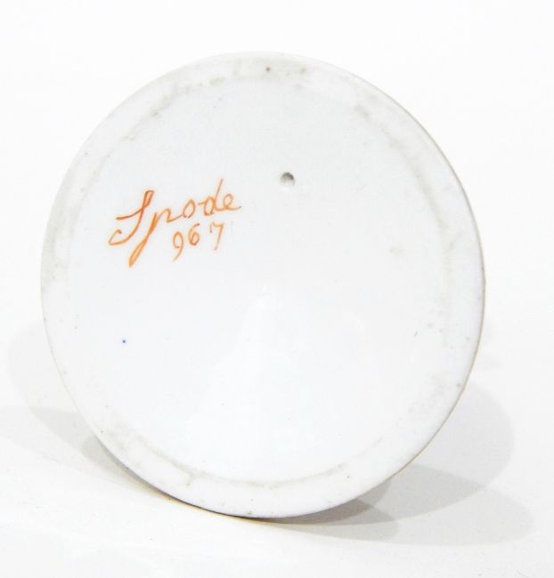 An early 19th century Spode miniature candlestick decorated in the Imari palette, pattern no. 967, 5cm high
