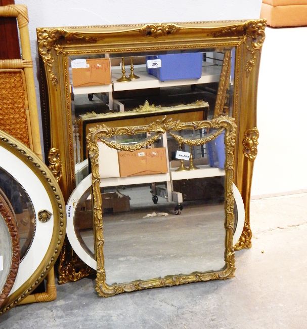 A rectangular gilt framed wall mirror and three others