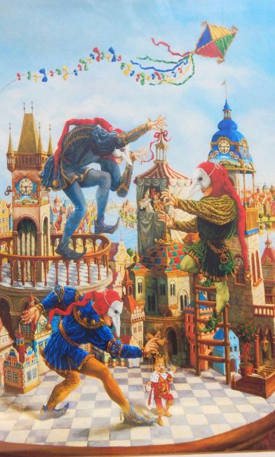 V FealkiskoGouache Masked puppeteers in fantasy setting, 49cm x 32cm