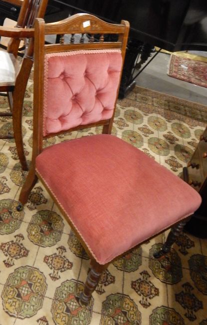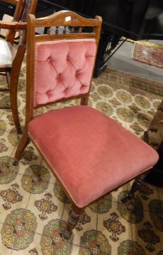 An Edwardian mahogany nursing chair, with button panelled back, upholstered seat, on ring turned legs with castors