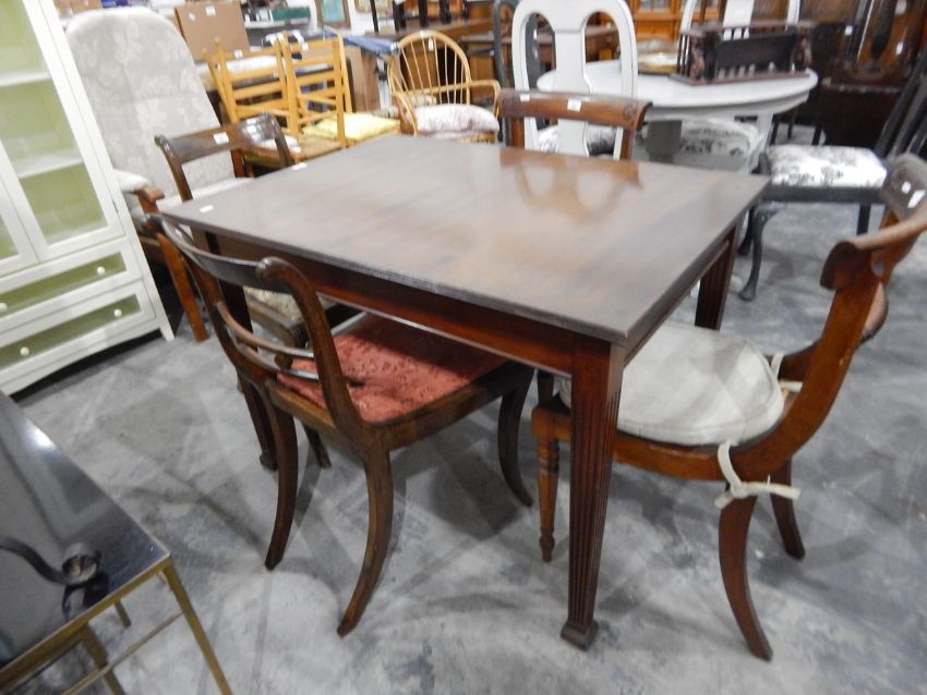 A rectangular mahogany dining table on tapering fluted supports, 42cm x 76cm