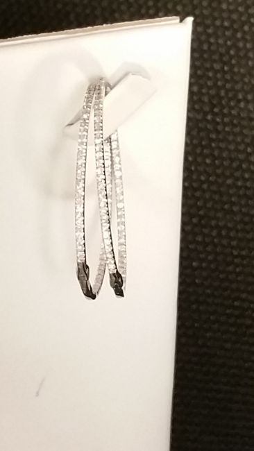 Pair of 18ct white gold and diamond oval hoop earrings, with claw set diamonds to the front edge, and inside back edge