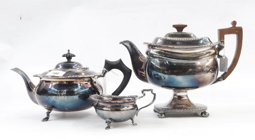 Quantity of silver plate to include pedestal teapot, further teapot, milk jug and etched glass claret jug with silver plated mounts
