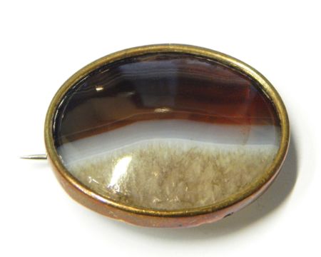 Victorian tortoiseshell and pique work brooch in the form of a Maltese cross, decorated with flowerheads, a circular brooch decorated with red and white enamel and agate brooch (3)