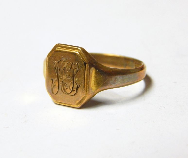 Pair of 9ct white gold cufflinks the centres with mother-of-pearl and seedpearls, 9ct gold signet ring with engraved initials and cross pendant (4)