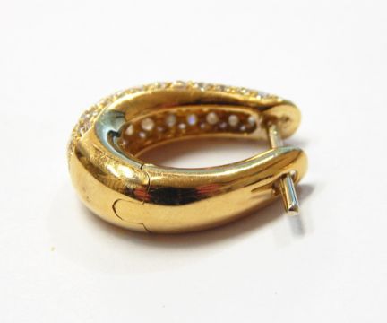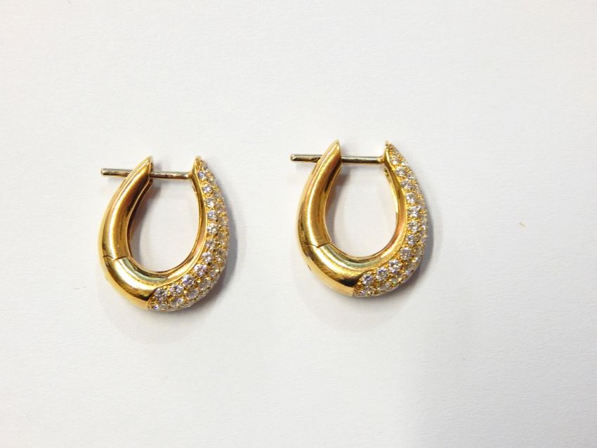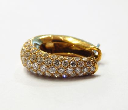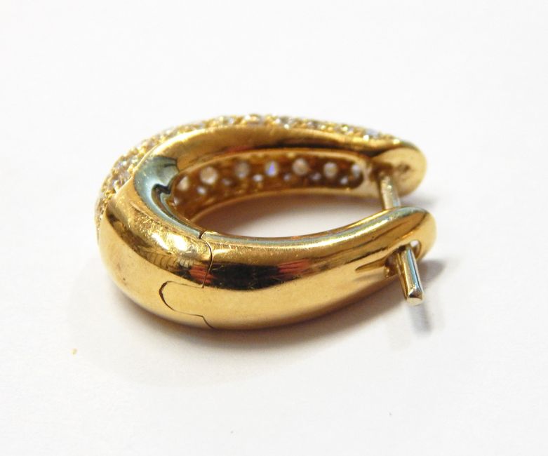 Pair 18ct gold and diamond earrings, each oval hoop, rounded tapered and pave set with five rows of graduated brilliant-cut diamonds, the diamonds 2.16ct total approx.