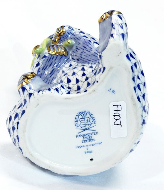 First Edition Herend Panda, Blue and green with gold colour flourishes