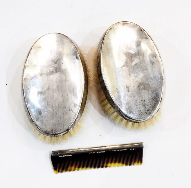 Pair of silver backed brushes and a silver mounted comb, Birmingham 1925 (makers marks worn)