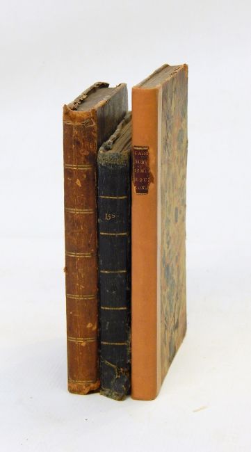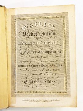 "Wallis's New Pocket Edition of the English Counties or Travellers Companions in which are carefully laid down all the direct and cross roads, cities... and a general map of England and Wales", hinges cracked, front bd repaired, very bumped and worn Paterson, Daniel "The New and Accurate Description of all the Direct and Principal Cross Roads in England and Wales...", 9th ed, Longman 1792, frontis folding map of England, some staining, contemporary writings on ep, contemporary marbled bds, 1/4 leather "Careys Actual Survey of the Country 15 Miles Round London on a scale of 1" to a mile...", pub J Carey engraver, map and print seller, June 20th 1786, index, numerous coloured maps, contemporary marbled bds rebacked, 1/2 leather and inscription on ffep dated 1790 (3) CONDITION REPORT: note: every page of every book is not checked, if you are unable to view yourself please ask for detailed information