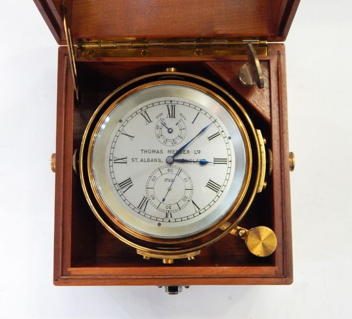 Marine chronometer by Thomas Mercer Limited, St Albans, no.17621, on brass gimbal, in glazed topped case, from Martin & Co, Antwerp