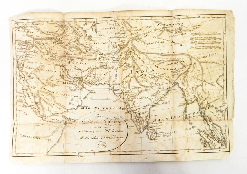 Antique engraved map of India, inscribed in roundel "Das Südöstliche Asien Zur Erlauterung von Dr Robertsons Historischen Unterfuchungen 1791", 26cm x 38cm (unframed)