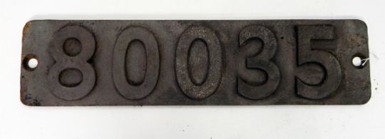 Cast iron steam locomotive smoke box numberplate, no.8003580035 (2-6-4 standard tank), 62cm long