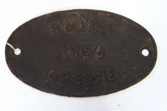 BR standard oval cast iron engine plate inscribed "Built 1956 Crewe"