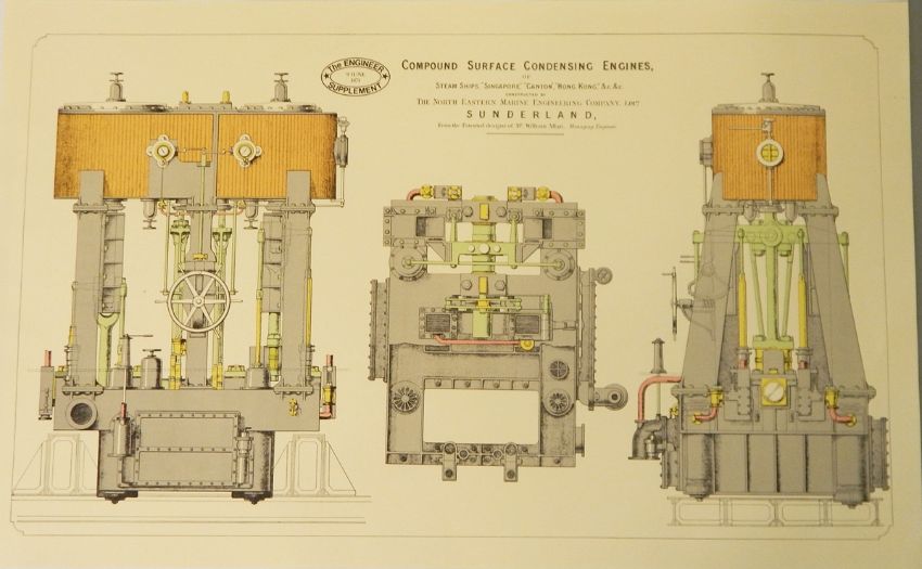 Reprints of technical drawings including the express passenger engine of the Great Northern Railway designed by Mr Patrick Sterling, a coloured technical drawing of standard, first and second class carriages North London Railway from the designs of Mr W Adams, further technical plans, assorted maps including a 1978 reprint of the LCC Trams map from 1932, a bus route reprint, etc. and After W J HugginsColoured engraving "Ships of the General Steam Navigation Company", the Caledonia Neptune leaving Hamburg, 50cm x 72cm, all in folio