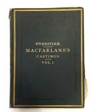 Illustrated catalogue of Macfarlane's Castings, 8th ed, vol 1, pub Saracen Foundry, Possilpark, Glasgow, large F, numerous full page ills, blue cl, gt titles CONDITION REPORT: note: every page of every book is not checked, if you are unable to view yourself please ask for detailed information