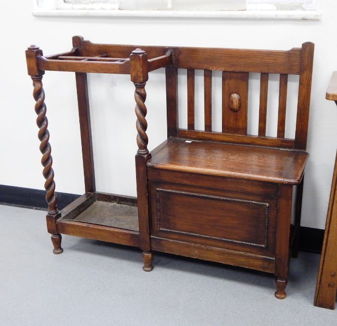 Oak hallstand with box seat and stick stand