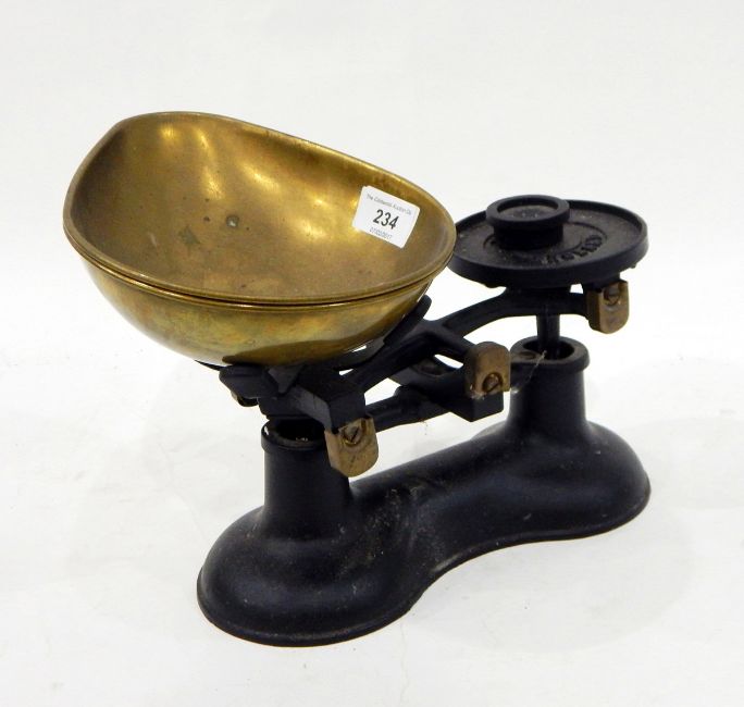 Pair of Victor balance scales with set of circular ounce weights and a set of square grams weights, a Winkel-Zeiss monocular microscope, No.70022, another set of scales, two leather bags and a steel cooling paddle