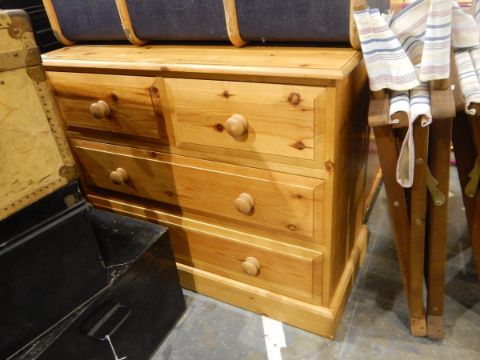 20th century modern pine blanket box, 101cm wide and a 20th century pine chest of two short and two long drawers, on plinth base (2)