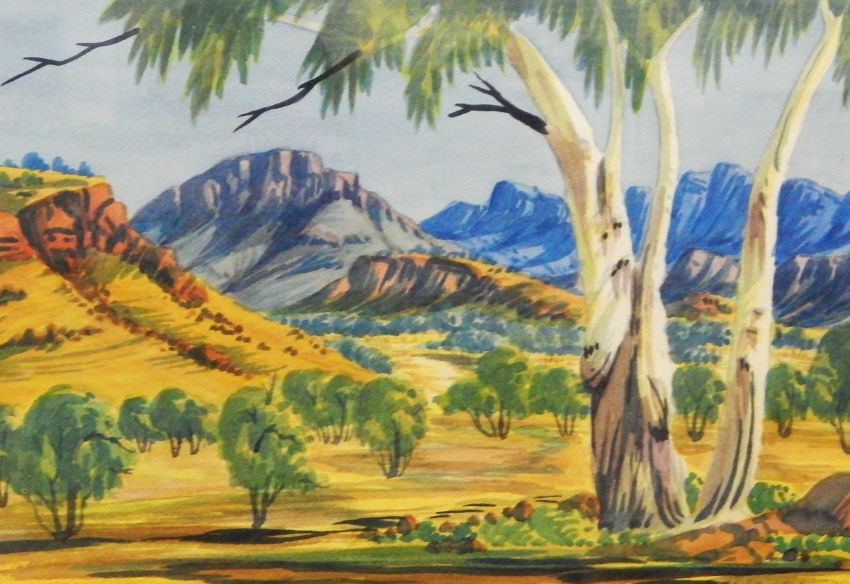 Benjamin Landara, Australian (1921-1985) Watercolour drawing Australian landscape with trees in foreground and mountains beyond, signed lower right, 24cm x 34cm