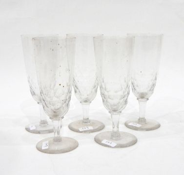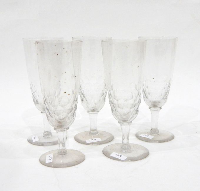 Set of eight 19th century ale glasses, each with thumb-cut decoration and etched with "Lion Brewery, Chippenham"