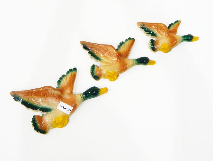 Set of six Wade figures of monks, with impressed names to bases, a Sylvac model of a giraffe, a Burleigh ironstone mug with the motto "God Speed the Plough", three pottery flying ducks and two other items