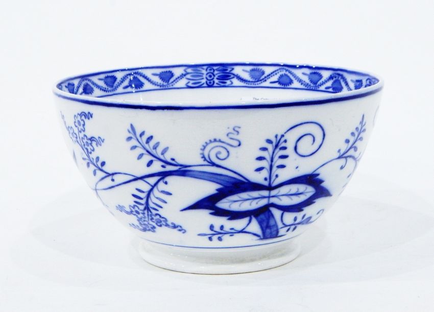 Set of eight Copeland coffee cans and saucers decorated with flowers and insects in blue and white (some damage), a Villeroy & Boch blue and white bowl and a blue and white saucer