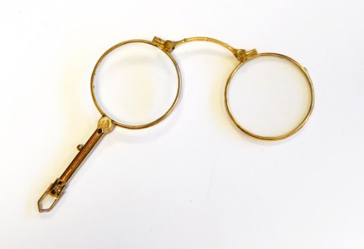 A gold plated and enamel folding lorgnette, 1930's Egyptian style