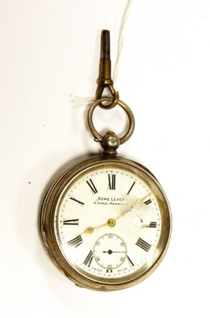 Acme Lever open-faced pocket watch with Roman numerals and subsidiary dial, Swiss movement in silver case