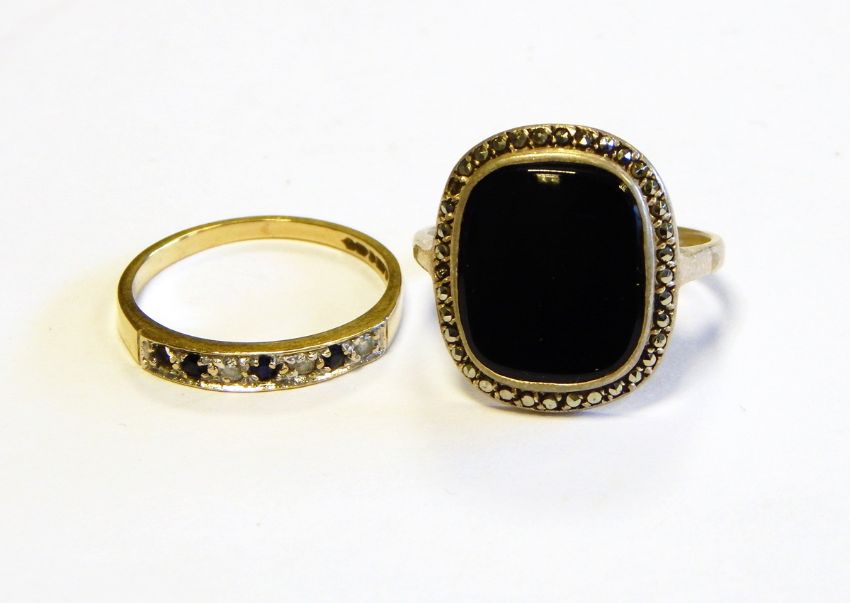 9ct gold chain necklace, a gold ring set blue and white stones and other jewellery items