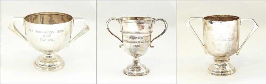 Silver two-handled trophy by H Phillips, London 1928 with presentation inscription, 10cm high and two further silver two-handled trophy cups, approx. 12oz (3)