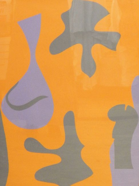 Berenice Sydney (1944-1983) Screen print Abstract form on orange ground, signed bottom left and inscribed to verso "Given to J C Wyatt after he arranged Oxford Exhibition in 1978", 81cm x 58cm