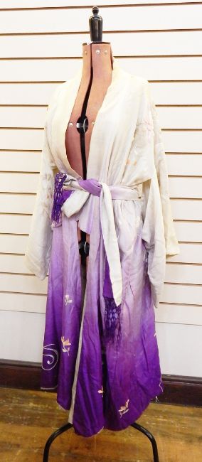 1920's silk embroidered dressing gown of Oriental-style, a silk Oriental sleeveless dressing gown embroidered with dragons and an Oriental printed silk dressing gown (3)