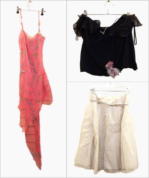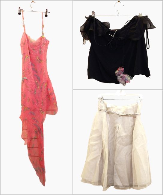 Gianni Versace chiffon evening dress, butterfly printed with diamante embellishment, Emanuel Ungaro silk black camisole and Avenue Montaigne cream chiffon skirt (3)