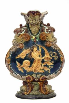 Three various Wilhelm Schiller & Sohn majolica vases with raised classical decoration (3)