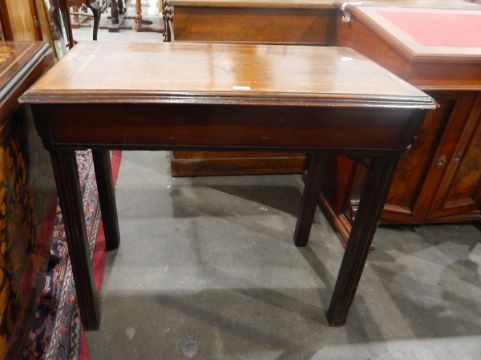 19th century inlaid rectangular top side table with pierced corner brackets, on moulded square legs, length 83cm