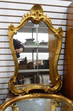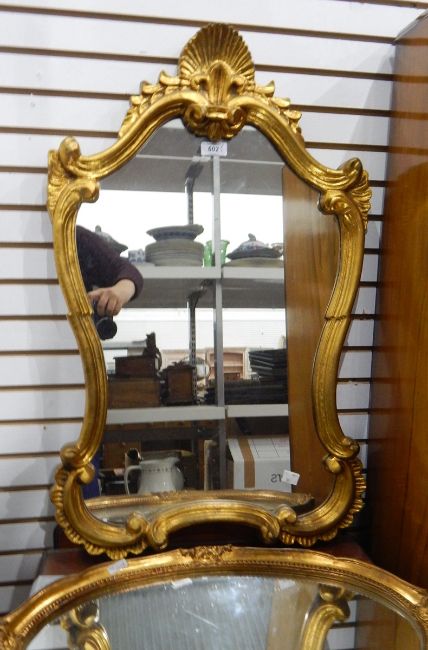 Modern wall mirror in gilt frame with scallopshell surmount and one other (2)