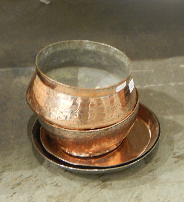 Four Eastern copper bowls and plates (4)