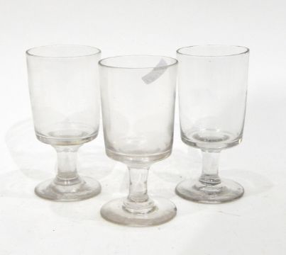 Three 19th century glass rummers, a small 19th century Bohemian glass souvenir tankard with etched decoration, a Georgian glass preserve jar and cover with silver collar and two other items (7)