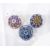 19th century glass paperweight, the centre decorated with purple, white and blue trumpet flowers on an integral knopped pedestal base 15cm high, and three miniature glass paperweights, all with millefiori cane designs 4cm diameter (4)