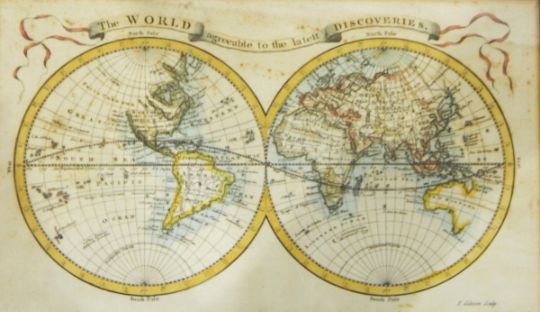 After Pierre Giffart (1643-1723)Coloured engravingspages from 'Costumes of Religious Orders'"Soeur Converse..." Religieuse Hospitaliere de L'Ordre du St. Esprit...""Religieuse de L'Ordre de St. Basile" 21 x 26 cms (3)Unattributed Pair watercolour drawingsGirls in National DressMap after J. Gibson (1750-1792)The World agreeable to the latest Discoveries