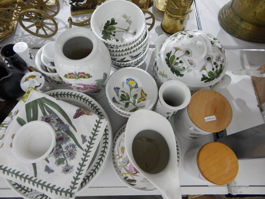Quantity of Portmeirion 'Botanic Garden' including jug, vase, casserole dish, storage jars, six teaspoons, meat plates and three Royal Worcester items
