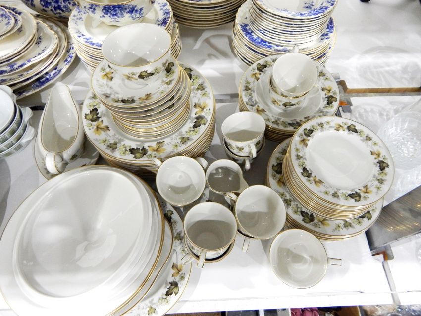Royal Doulton "Larchmont" part dinner service comprising dinner plates, side plates, soup bowls, two serving dishes, cups and saucers etc.