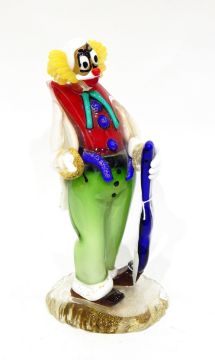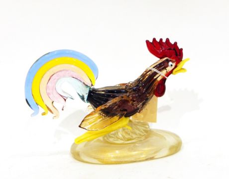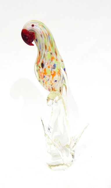 Four Murano glass models, one of a parrot, 34cm high, one of a clown (hand missing), 33cm high, another of a fish, 34cm high and a cockerel, 15cm high (4)