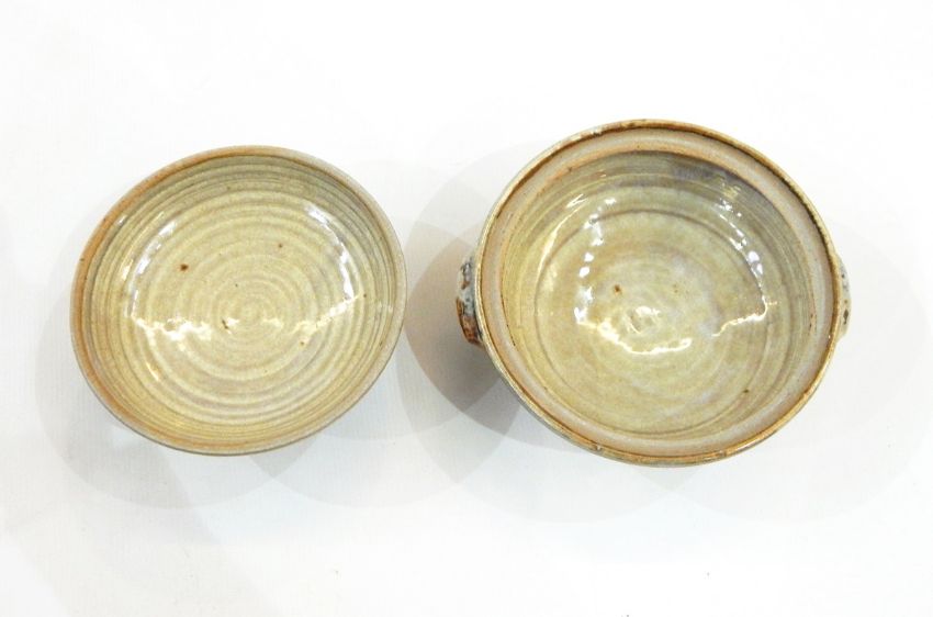 Ray Finch Winchcombe reduced salt glaze lidded rice bowl with iron slip, stamped to base, 15cm high