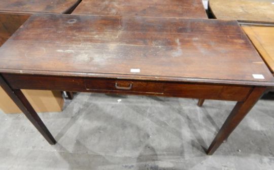 Oak rectangular top side table with moulded edge, frieze drawer, on square tapering legs, width 123cm