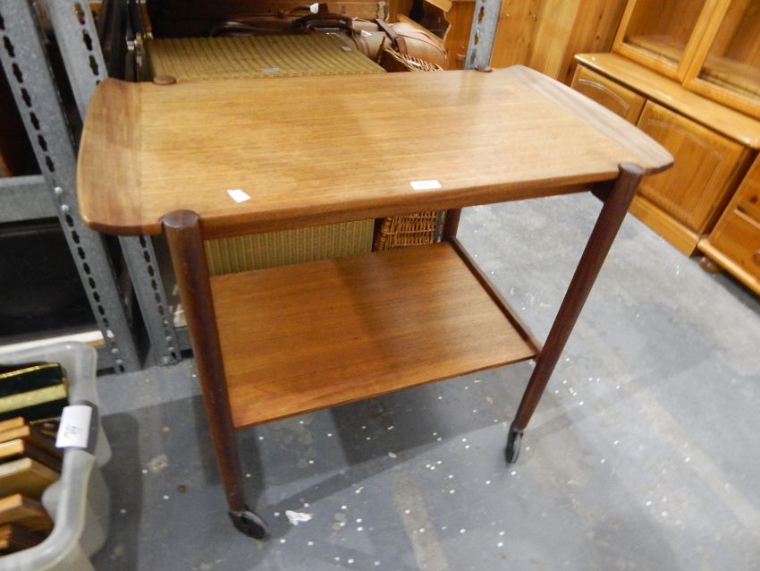 Teak Scandinavian-style tea trolley, and a pair of metal table supports (3)