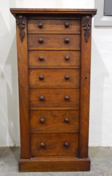 Victorian walnut seven-drawer Wellington chest on plinth base