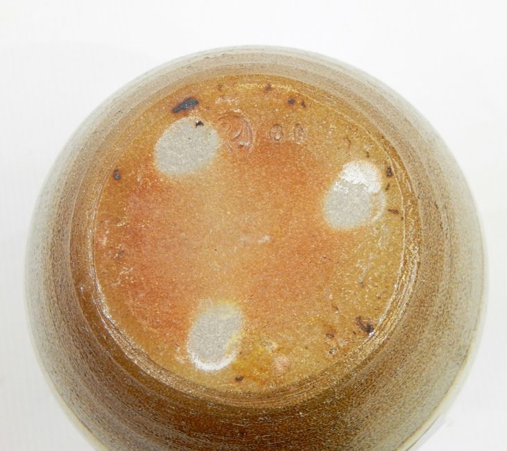 Ray Finch Winchcombe reduced salt glazed vase of ovoid form with lug handles stamped to base, 16cm